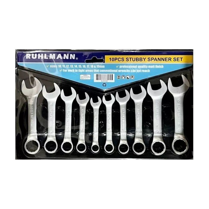 Juego de Llaves Combinadas Cortas 10-19mm 10pzs