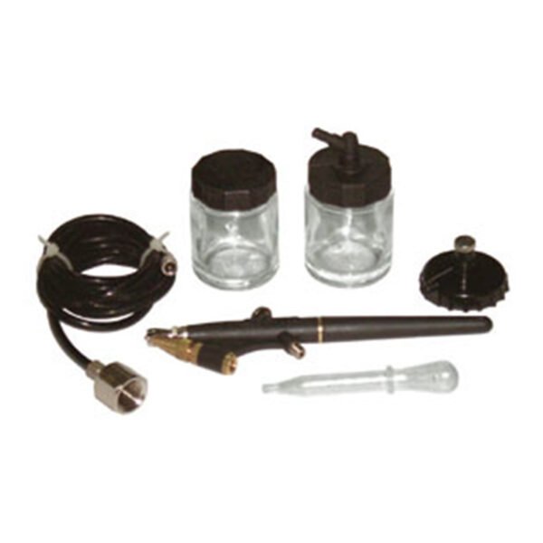 Kit: aerógrafo, manguera conexión, soporte, frasco preparación pintura, conector a línea aire, vaso pequeña cantidad