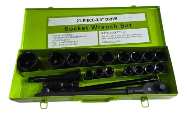 Caja Chapa Set Juego De Tubo 21 Alto Impacto Encastre 3/4 Hexagonal