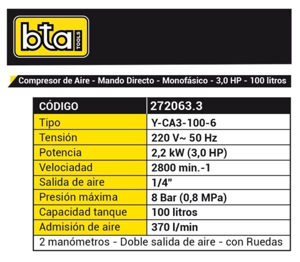 Compresor Portátil De Aire 50L 2Hp Monofásico