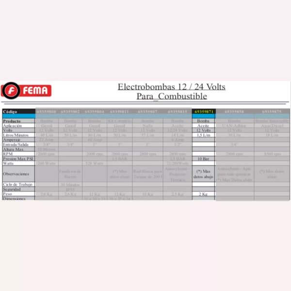 BOMBA FEMA 12V PARA ACEITE 1.5l/min INCLUYE: MANGUERA DE SUCCION DE 1.2 MTS X 6MM Y MANGUERA DE SALIDA DE 1.6 MTS