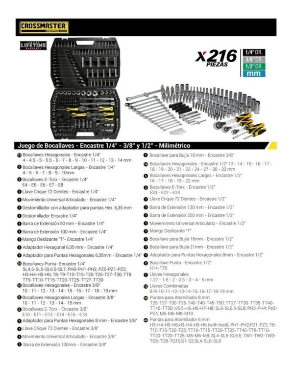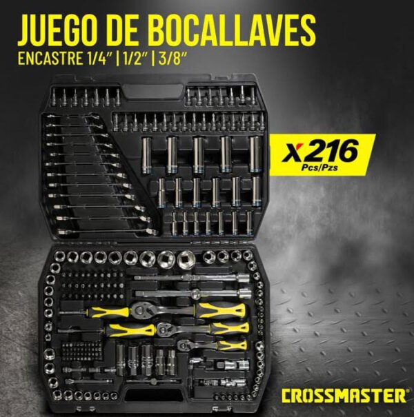 Juego Bocallaves 216 Piezas 1/4-3/8-1/2″
