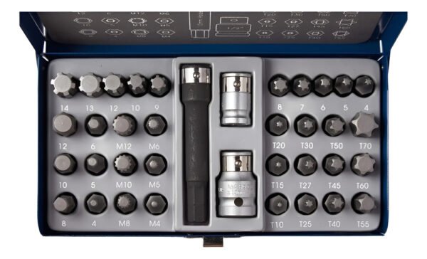 12 – Puntas Torx X 30mm: T10 – T15 – T20 – T25 – T27 – T30 – T40 – T45 – T50 – T55 – T60 – T70.