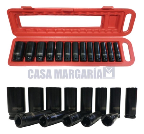 – 13 bocallaves de impacto: 10, 13, 14, 15, 17, 18, 19, 21, 22, 24, 27, 30, 32mm