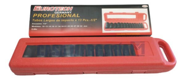 Juego Tubos Impacto Largos Encastre 1/2” 13pzas Eurotech