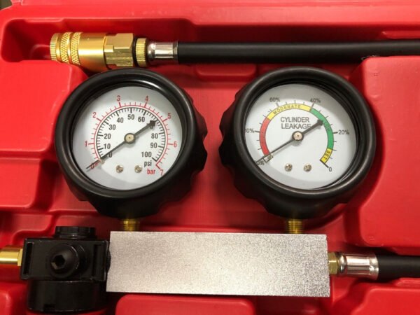 -Se puede detectar fácilmente fugas a través de las válvulas, segmentos del pistón, junta de tapa. Ideal para detectar fugas en la cámara de combustión y determinar la causante de la misma. Ya sea hacia circuito de agua, aceite, aros, admisión o escape.