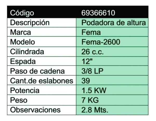 Motosierra Podadora De Altura Fema 2600